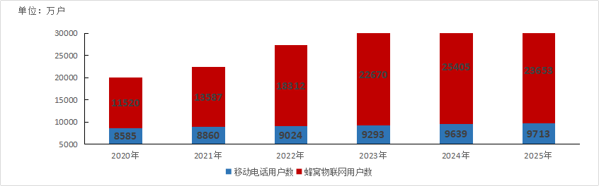 图2-5 2020-2025年物联网用户情况