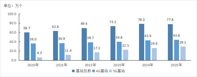 图4-2 2020—2025年移动电话基站发展情况
