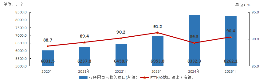 图4-1 2020—2025年互联网宽带接入端口发展情况