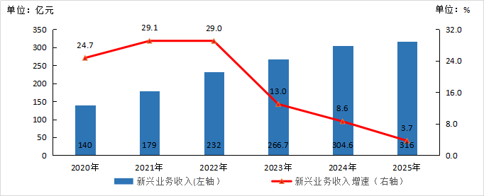 图1-4 2020—2025年新兴业务收入发展情况