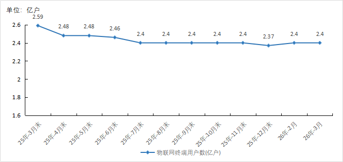 图3 2025年3月末-2026年3月末物联网终端用户情况